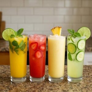 El calor pide bebidas frescas, naturales y llenas de sabor. Estas cuatro recetas son fáciles de preparar en casa, usando frutas y hierbas frescas que aportan frescura y un toque delicioso a tu día. Perfectas para acompañar comidas, meriendas o simplemente para hidratarte con estilo.