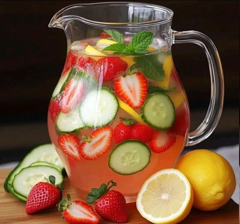 ¡DELICIOSA Y REFRESCANTE AGUA DE FRESA, LIMÓN, PEPINO Y MENTA!