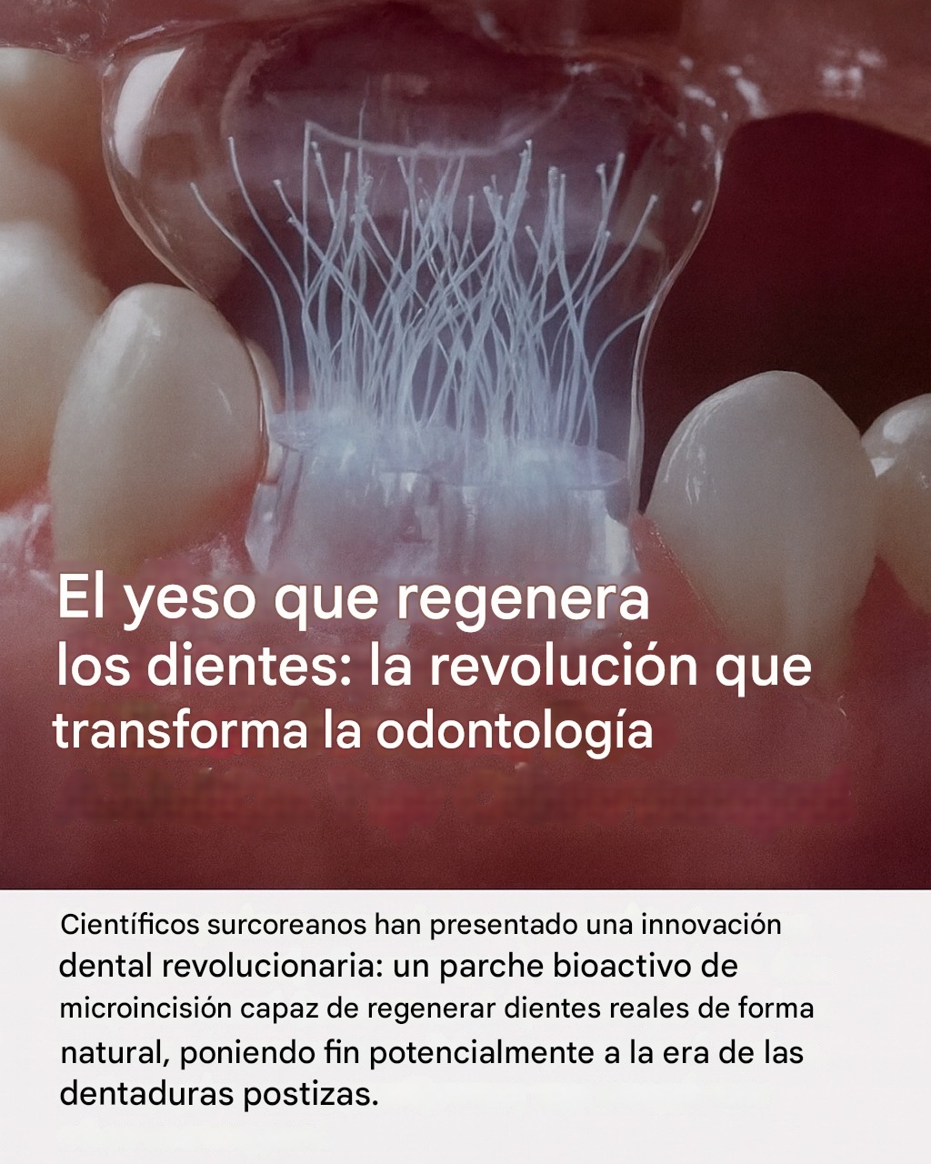 Científicos surcoreanos han anunciado algo que parece revolucionar la medicina moderna: un diminuto parche bioactivo que puede activar las células madre del propio cuerpo y regenerar los dientes. Sin implantes artificiales, sin metal, sin tornillos: auténtica regeneración biológica. Si esta tecnología se confirma en los próximos ensayos clínicos, hablaremos del fin de una era en la odontología y del comienzo de una completamente nueva.