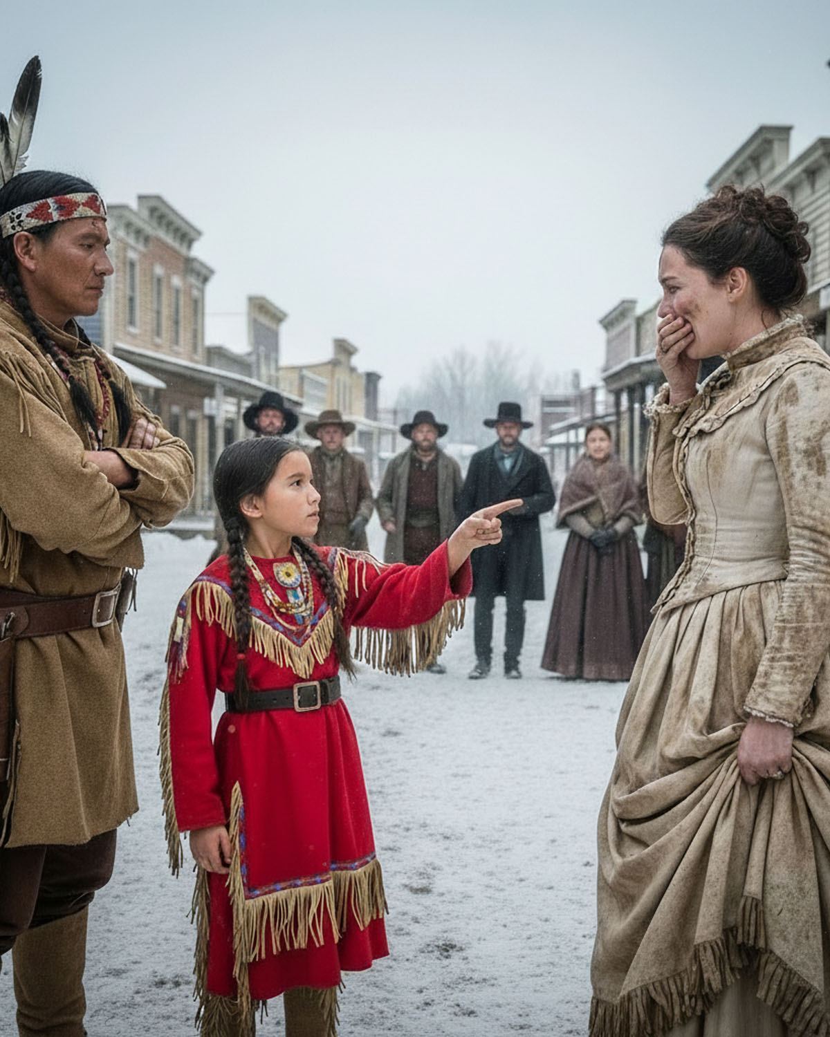 Sus ojos esquivaban los de Isabel cada vez que intentaba mirarlo directamente, como si su presencia fuera una mancha que prefería no ver. Entre los asistentes, casi inadvertido, en un rincón de la capilla, estaba Nahuel, alto de piel bronceada por el sol del desierto, con el cabello negro que le caía hasta los hombros y vestido con ropa de trabajo simple pero limpia. Había venido al pueblo para entregar una carga de pieles a don Enrique, el comerciante, y al no tener donde dejar a su hija de 6 años, había decidido permitir que presenciara la ceremonia mientras él esperaba que terminaran los negocios del día.