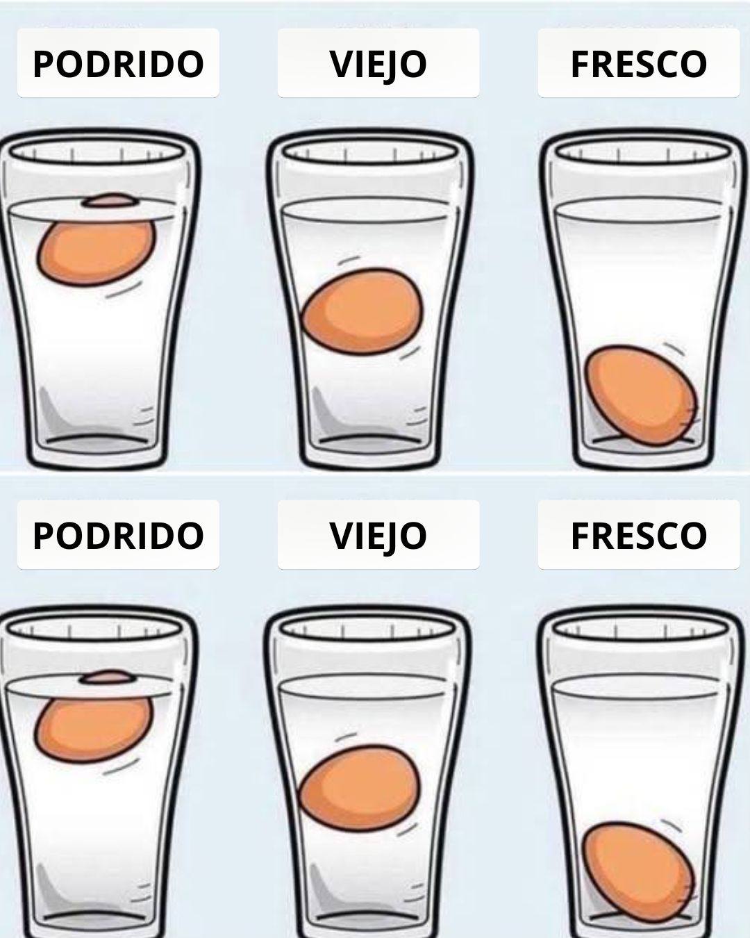 Este es el método casero más exacto, confiable y utilizado en todo el mundo para comprobar la frescura del huevo. Solo necesitas un recipiente con agua (preferiblemente profunda) y seguir estas observaciones: