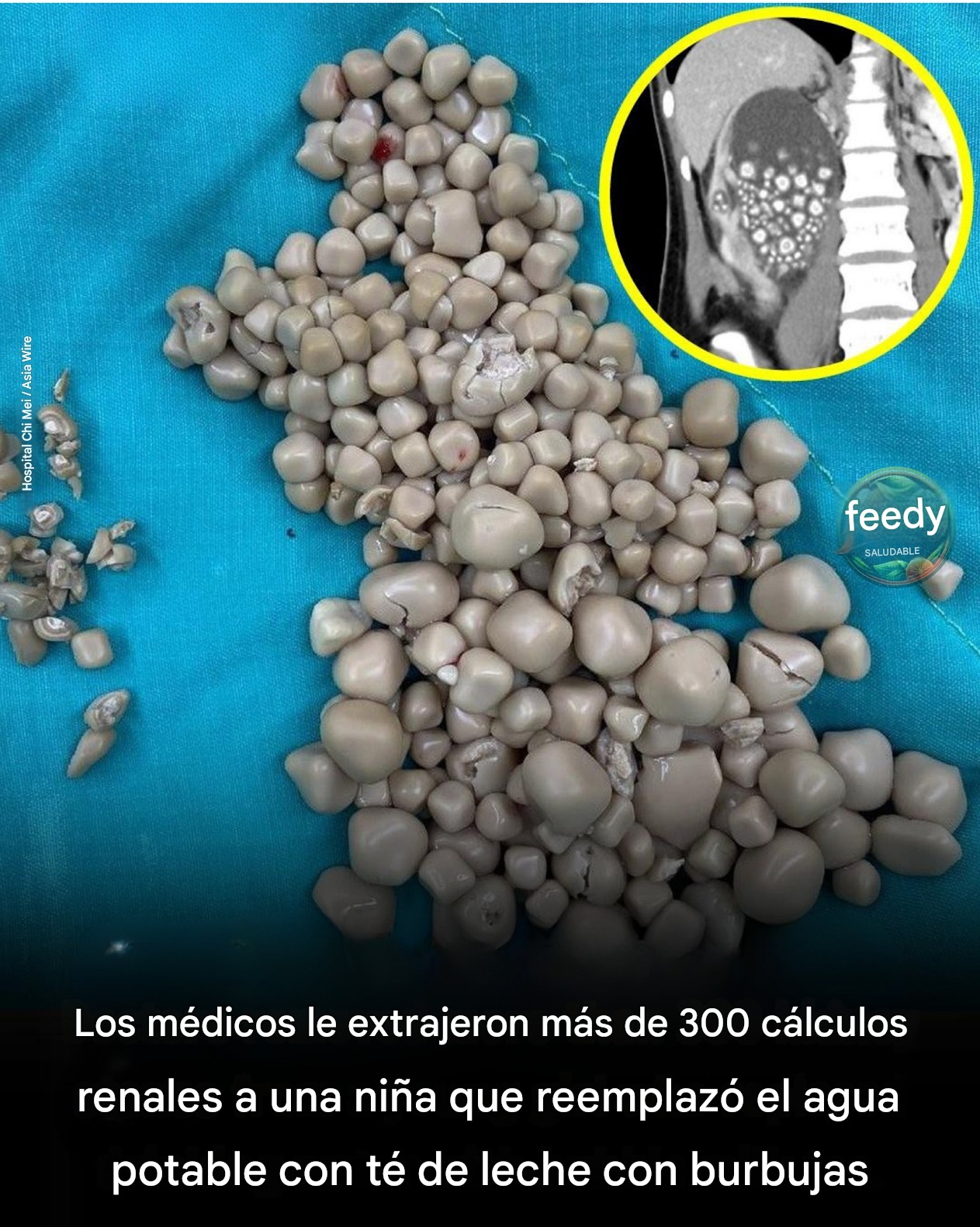 300 cálculos renales probablemente causados por beber té con leche de burbujas en lugar de agua