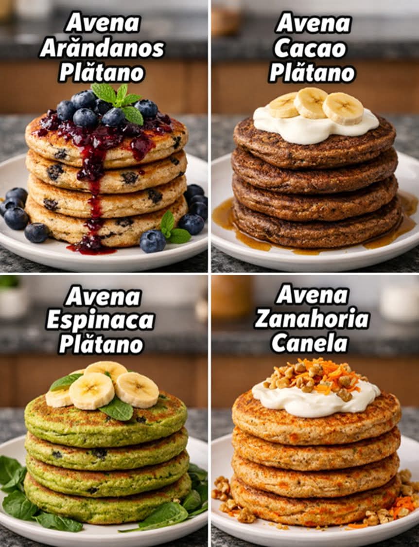 🥞4 Recetas Deliciosas de Hotcakes Saludables con Avena🥞🫐