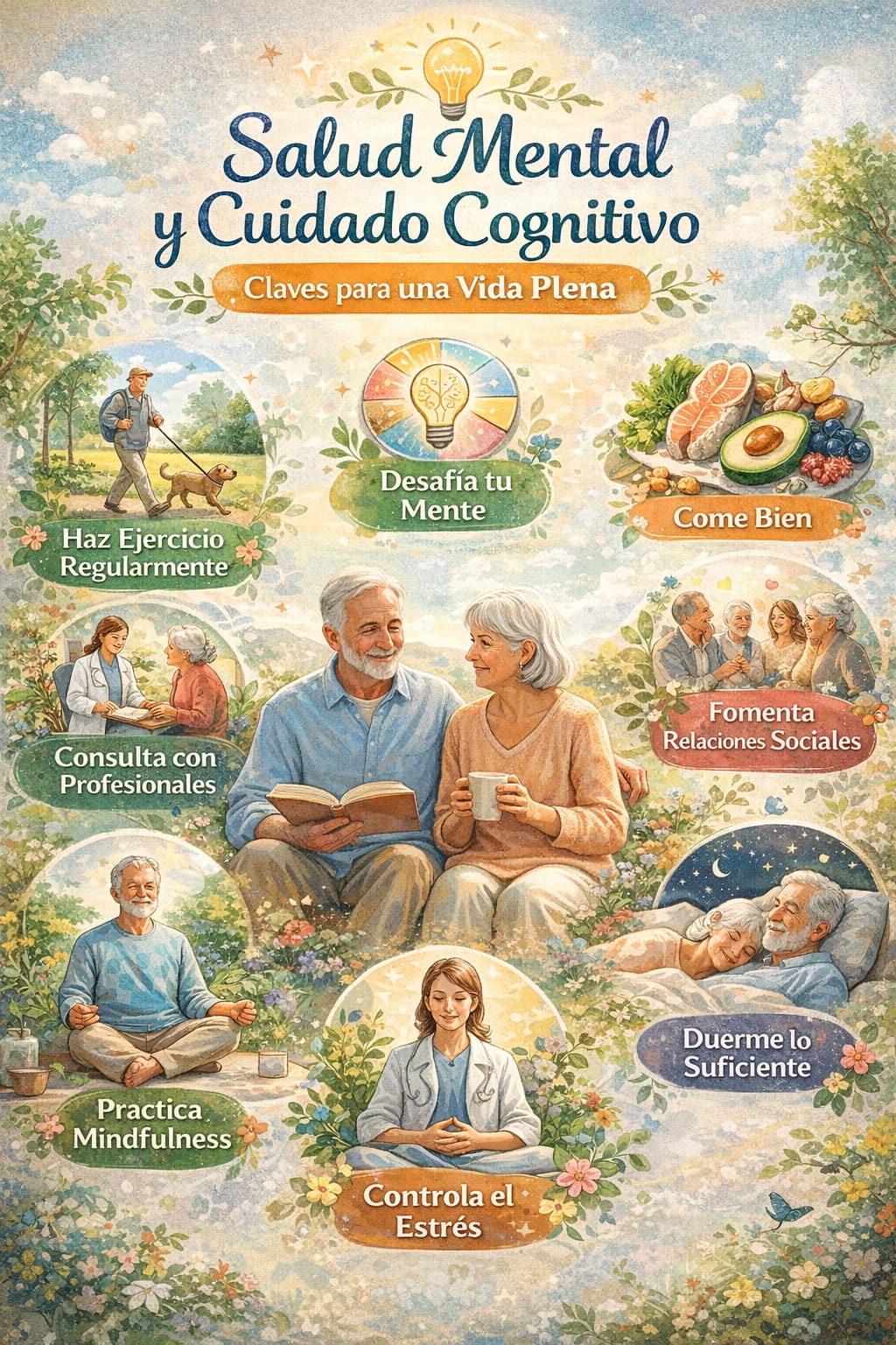 La salud mental y el bienestar cognitivo son dos aspectos fundamentales para llevar una vida equilibrada y saludable. A medida que envejecemos, tanto nuestra mente como nuestro cerebro experimentan cambios naturales, lo que hace que sea crucial tomar medidas para mantener nuestra salud mental y cognitiva en su mejor estado posible. Aquí te comparto algunos consejos y prácticas clave para cuidar de tu salud mental y cognitiva, promoviendo un envejecimiento activo y feliz.