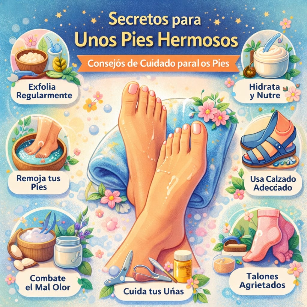 Nuestros pies son los encargados de llevarnos a todos lados, pero muchas veces los olvidamos hasta que nos duelen o lucen un poco deshidratados. Cuidar bien de los pies no solo mejora su apariencia, sino que también los mantiene cómodos y saludables. Ya sea para prepararte para la temporada de sandalias o simplemente para consentir tus pies después de un largo día, aquí te dejo algunos secretos de cuidado para que pongas tu mejor pie adelante.