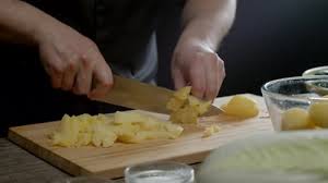Para empezar, pela las patatas y córtalas en rodajas finas. No deben ser ni muy gruesas ni muy pequeñas. Cuanto más iguales sean los cortes, mejor se cocinarán.