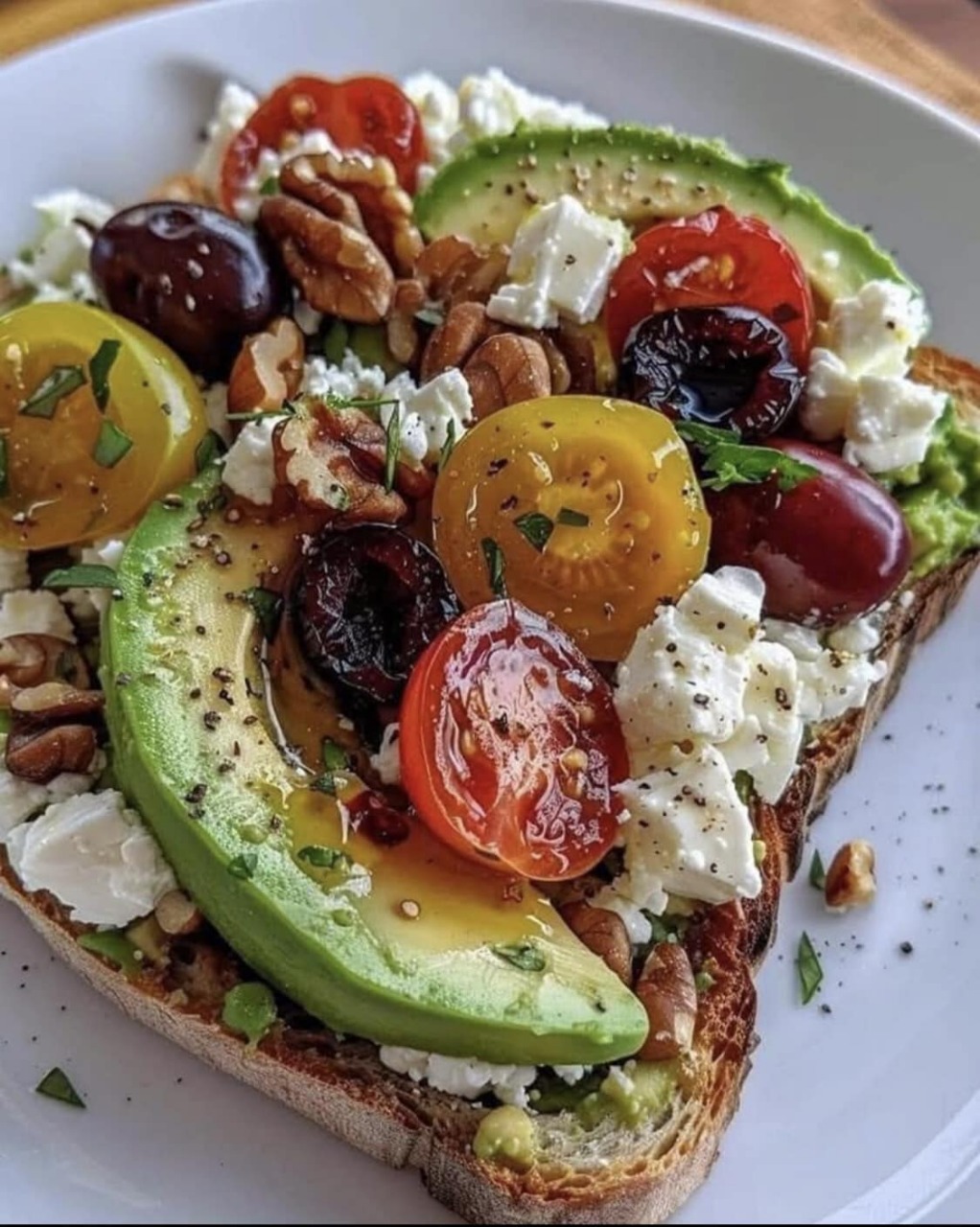 ¡La tostada de aguacate nunca pasa de moda! 😍 Pero si creías que ya no podía mejorar, prepárate para una explosión de sabores y texturas con esta receta que combina lo cremoso del aguacate 🥑, la frescura de los tomates cherry 🍅, el toque dulce de los arándanos rojos secos 🍒 y el crujido irresistible de las nueces 🥜. Para coronar esta obra maestra, el queso feta 🧀 añade el equilibrio perfecto con su sabor ligeramente salado. ¡Un desayuno, brunch o snack que te hará sentir como un chef gourmet! 👨🍳